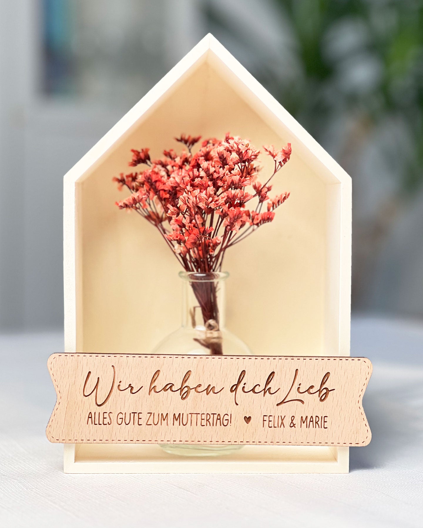 Deko Holzhaus mit Blumen - Personalisierte Muttertag Geschenke