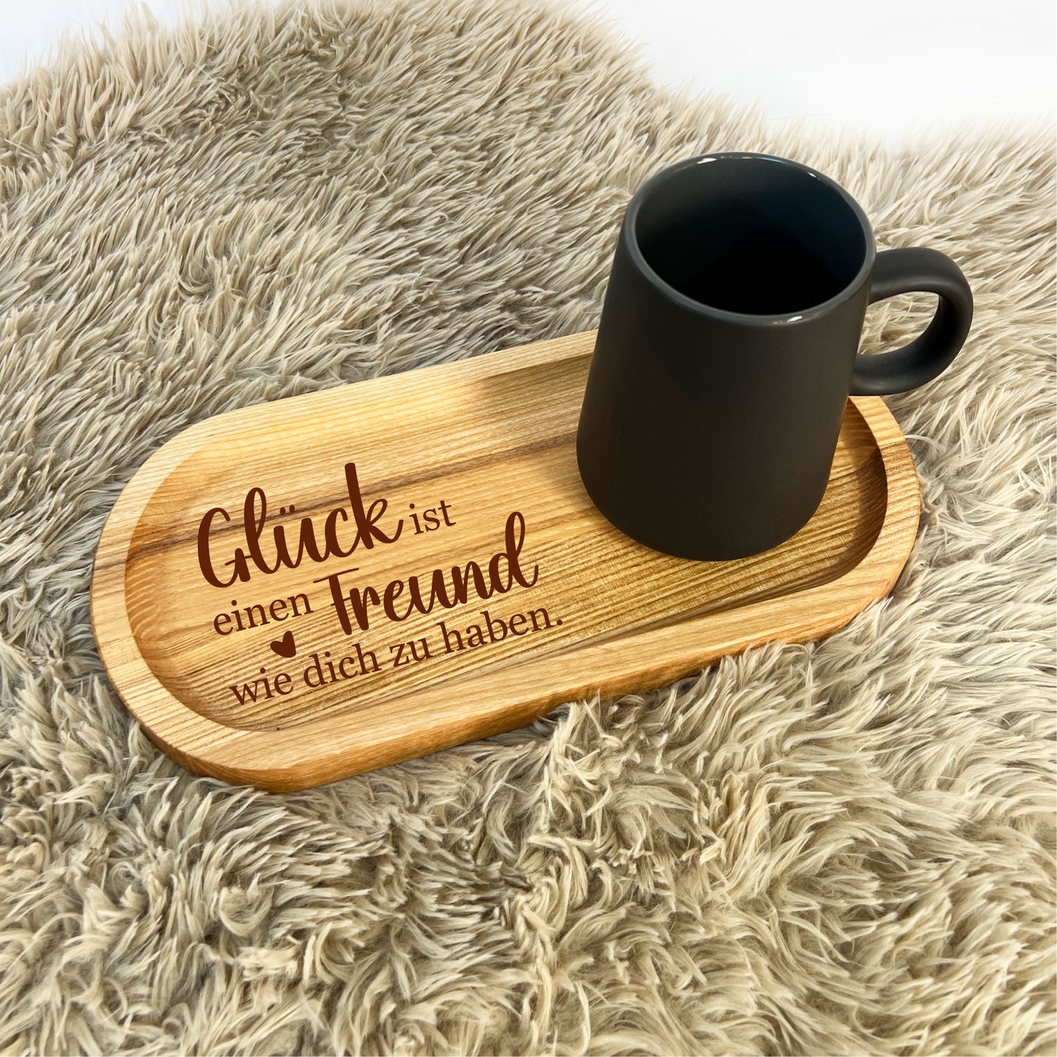 Graviertes Holztablett mit Becher - groß | Freunde