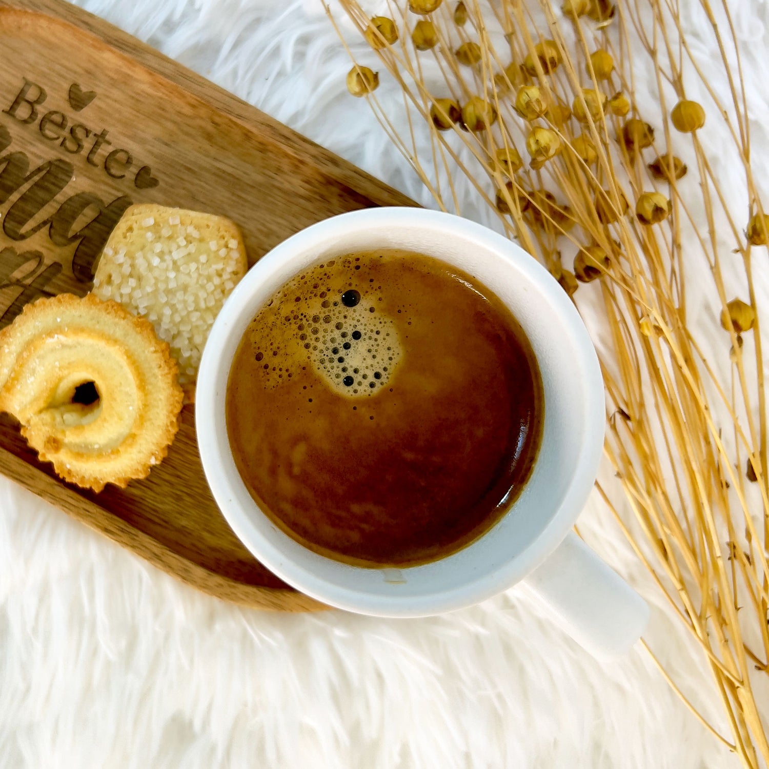 Das elegante Set aus kleinem Becher und einem dazu passenden, gravierten Holztablett ist das ideale Geschenk für deine Eltern. Verleihe dem Tablett mit einer individuellen Gravur und dem Namen deiner Mutter oder deines Vaters eine ganz persönliche Note. So wird es nicht nur zum idealen Begleiter für den morgendlichen Kaffee oder Tee, sondern auch zu einem einzigartigen Erinnerungsstück.