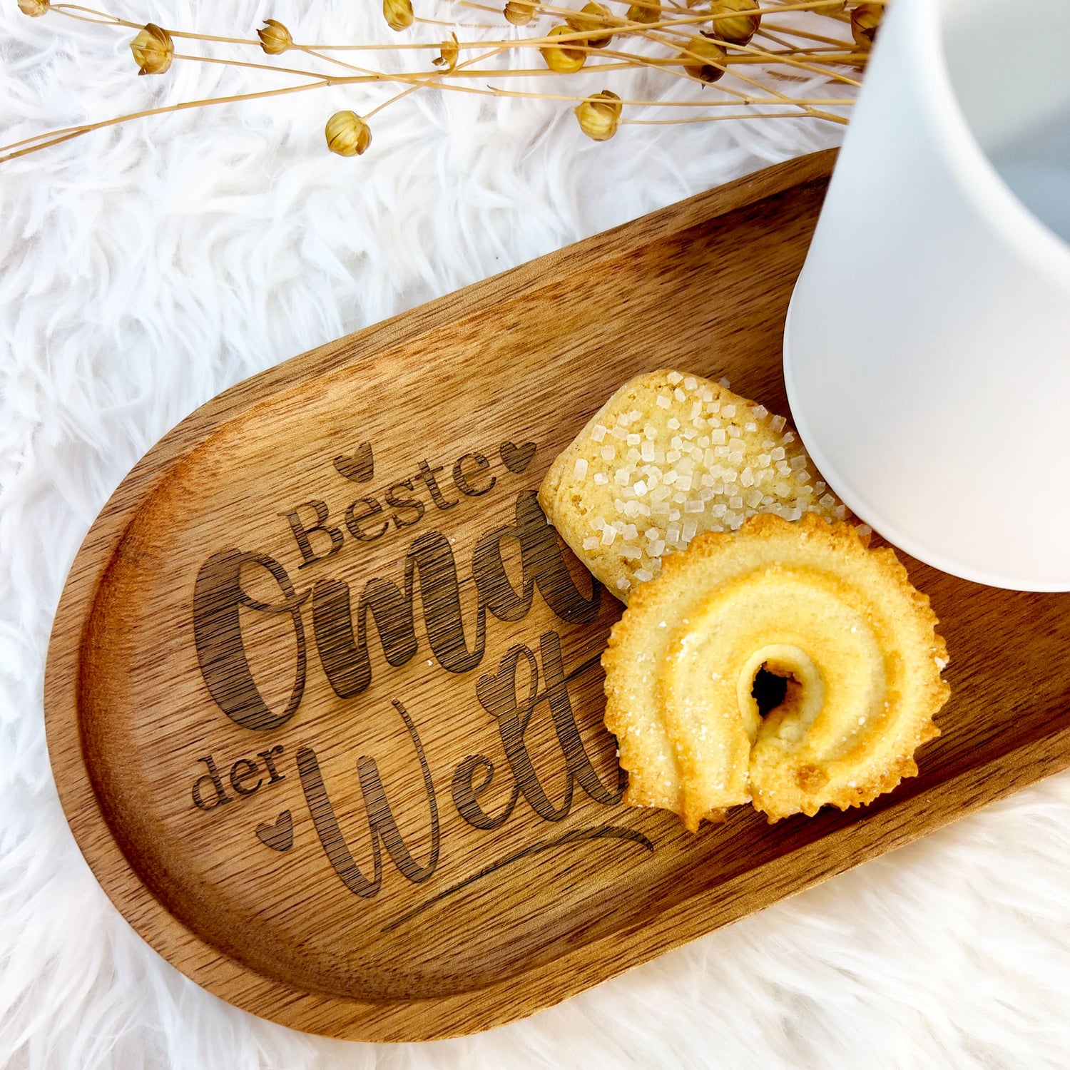 Mit dem liebevoll gestalteten Set aus Becher und graviertem Holztablett wird jede Kaffeepause zu einem besonderen Moment. Personalisiere es mit dem Namen deiner Oma oder deines Opas: So wird das Set zu einem perfekten Geschenk, das für den täglichen Kaffeegenuss und auch als wundervolles Erinnerungsstück dient. Ein einzigartiges Accessoire, das deine Großeltern garantiert zum Lächeln bringt!