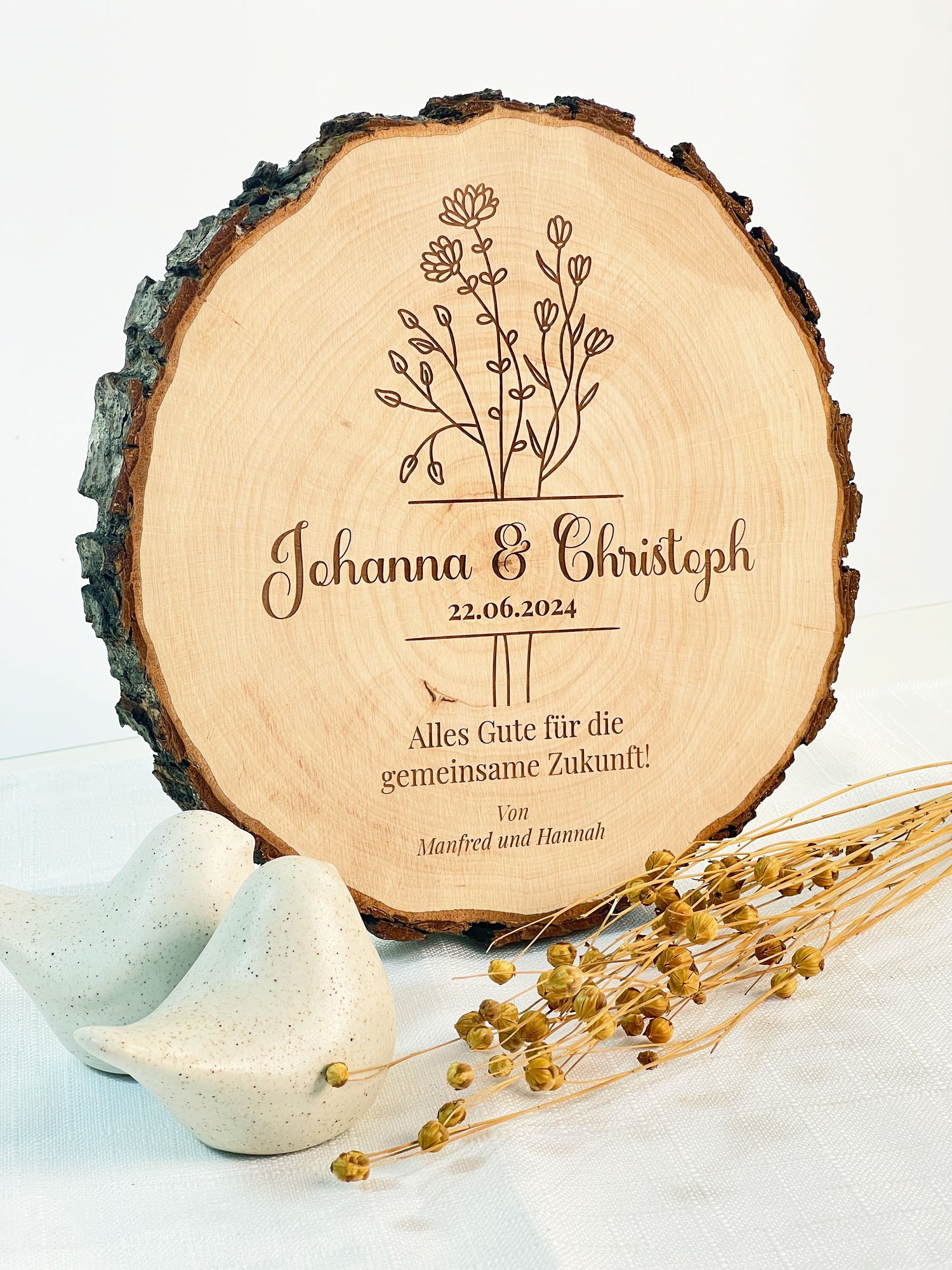 Personalisierte Baumscheibe mit Gravur - Hochzeitsgeschenk