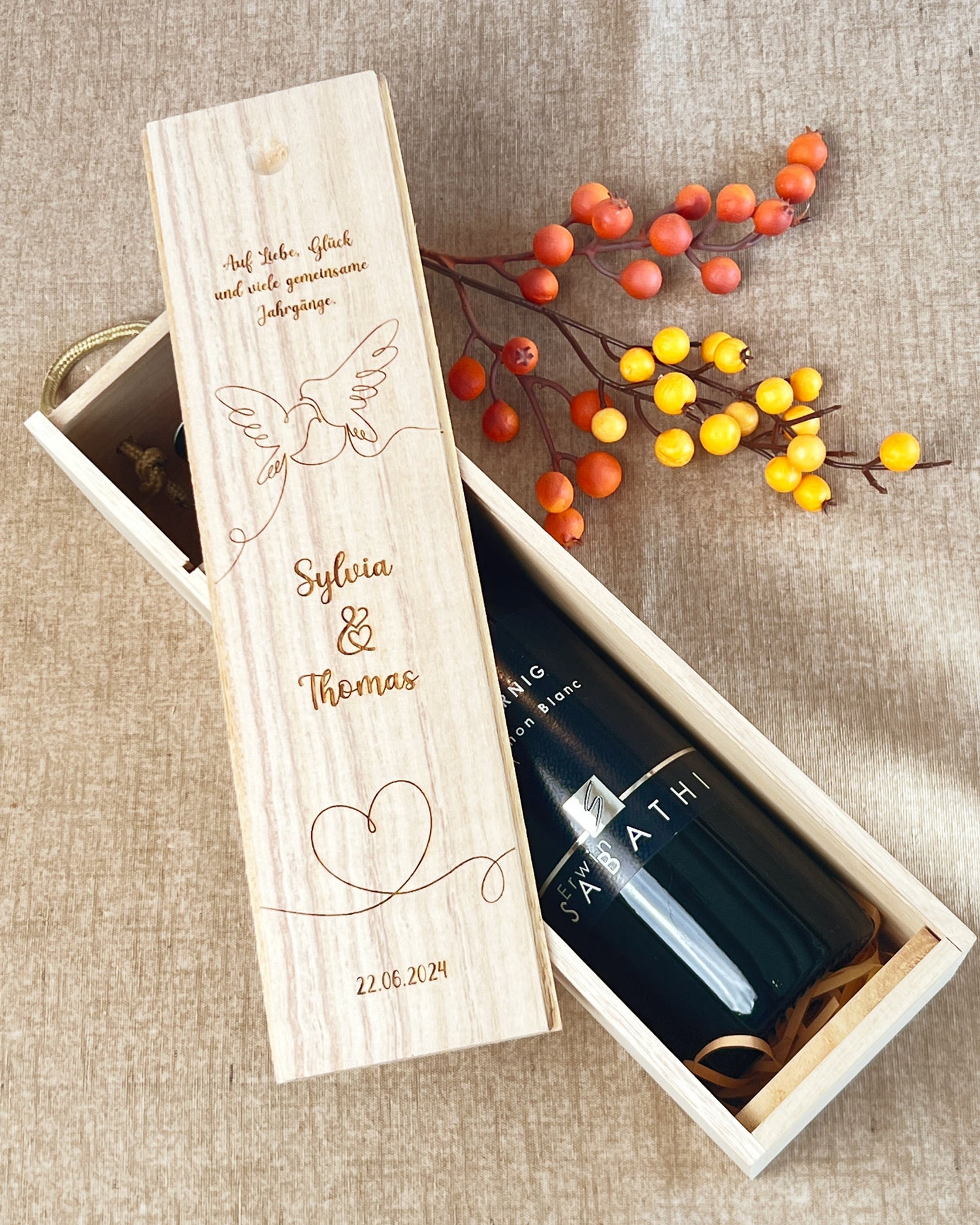 Hochzeitsgeschenk mit Herz: Personalisierte Weinkiste aus Holz