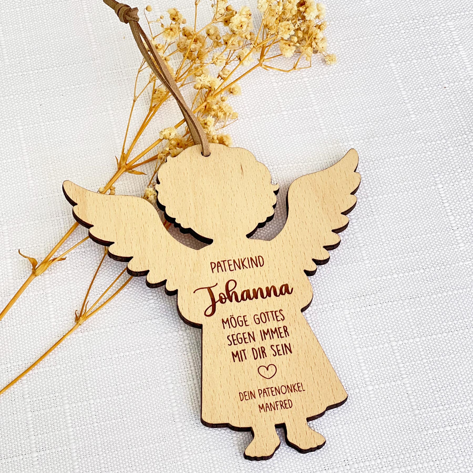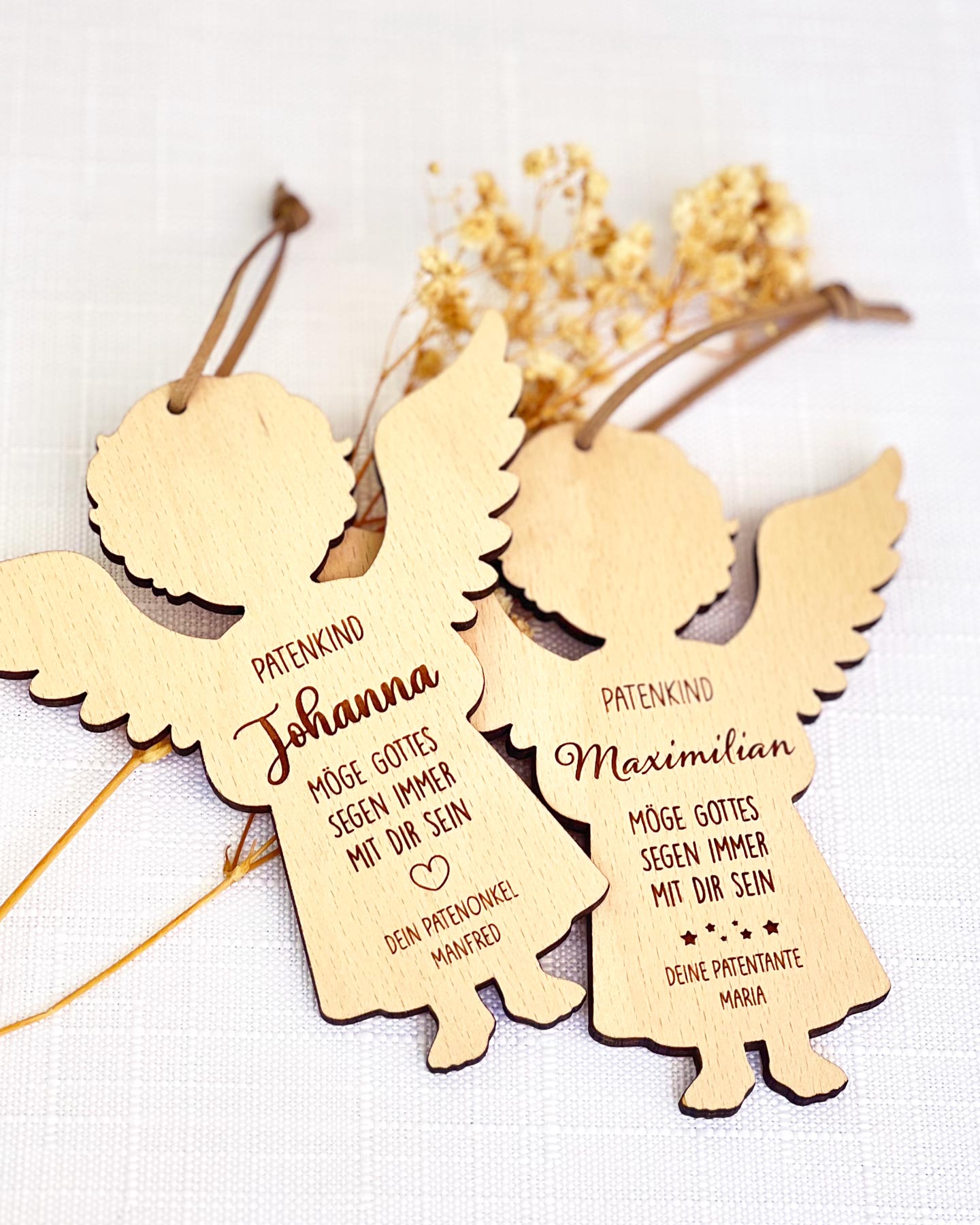 Ein Patenkind zu begleiten ist etwas ganz Besonderes – und mit unserem personalisierten Schutzengel aus Holz schenkst du deinem kleinen Schützling ein bleibendes Zeichen deiner Verbundenheit.
