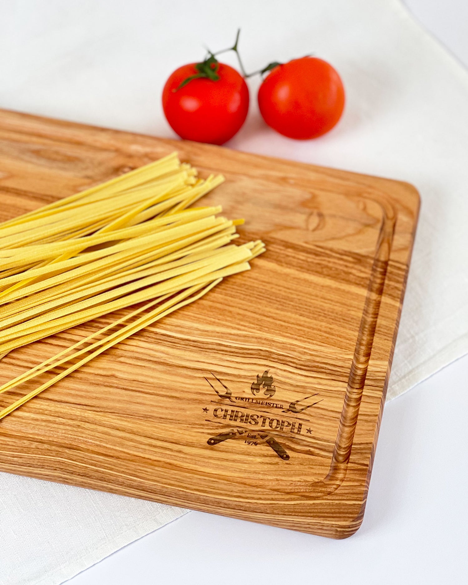 Für Grillprofis und Hobbygriller: Personalisiertes Schneidebrett aus Holz mit Gravur