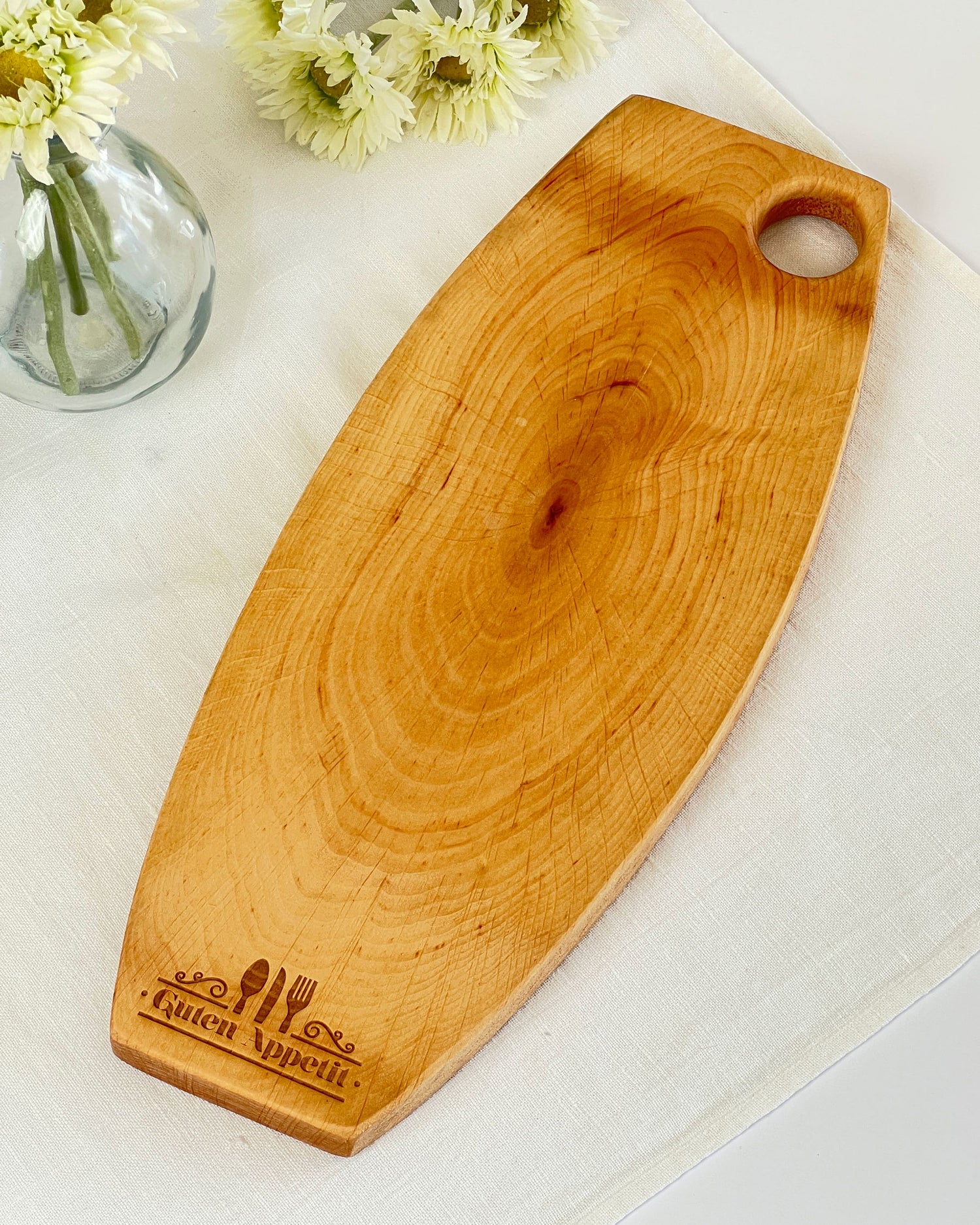 Zubereiten, servieren, genießen: Mit dem personalisierten Servierbrett aus Erlenholz